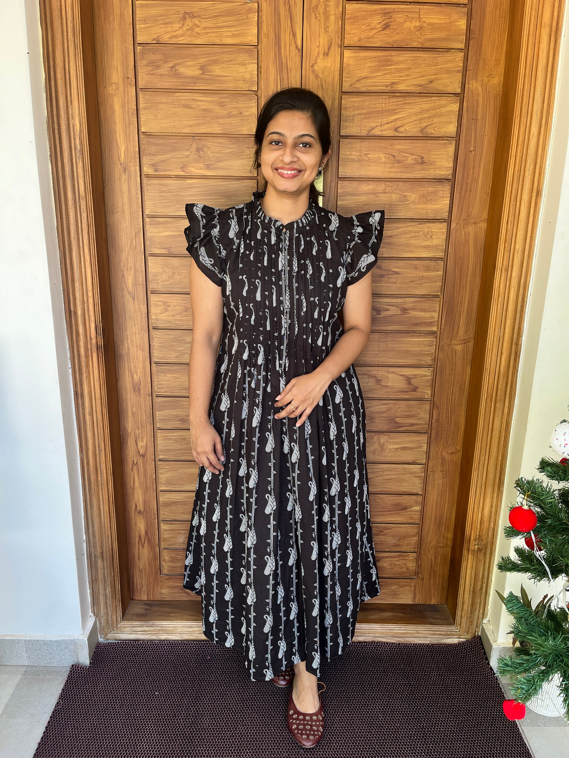 DS80 Black pintuck dress with neck frills