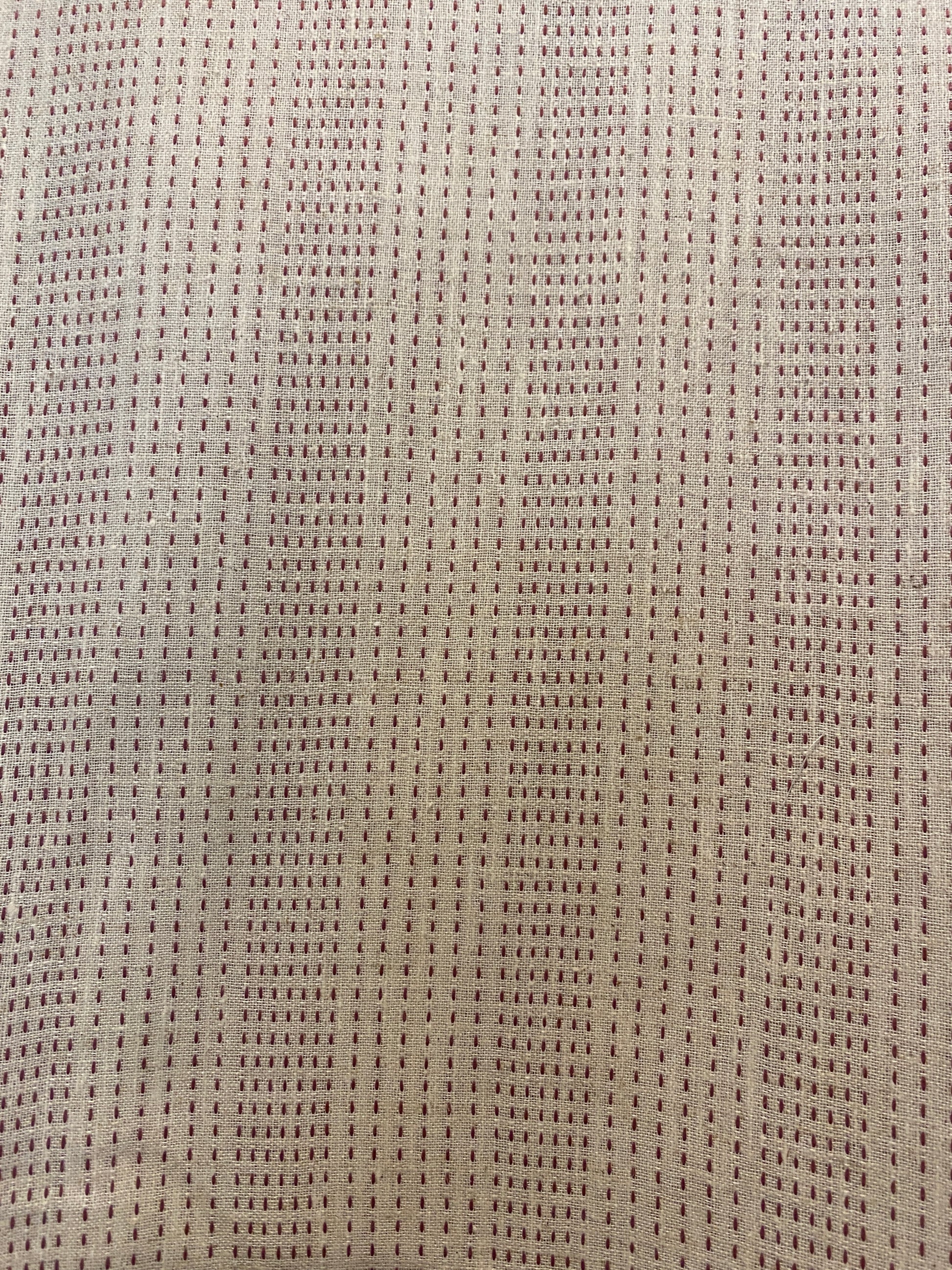 FBR065 Red thread work on cream cotton fabric