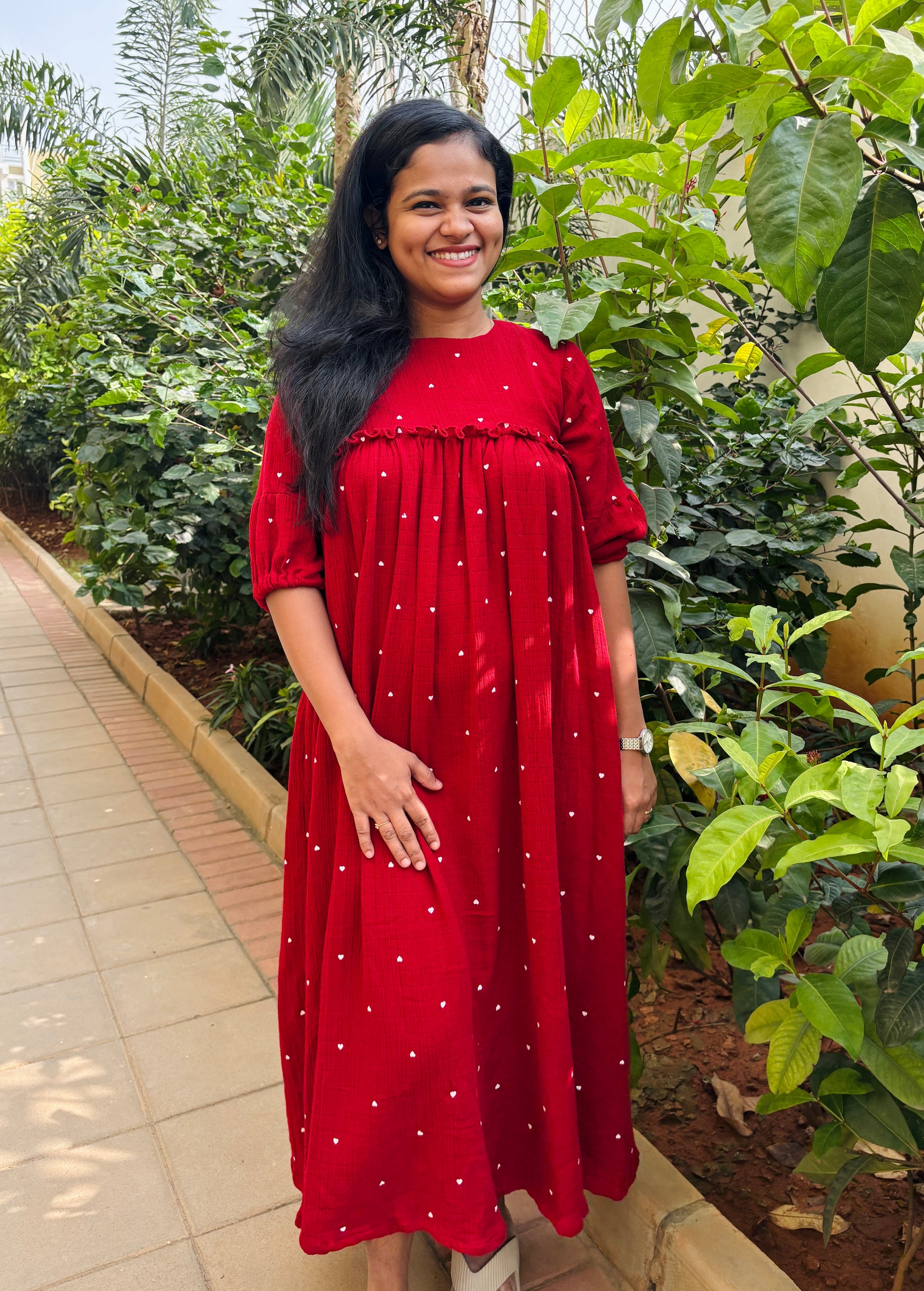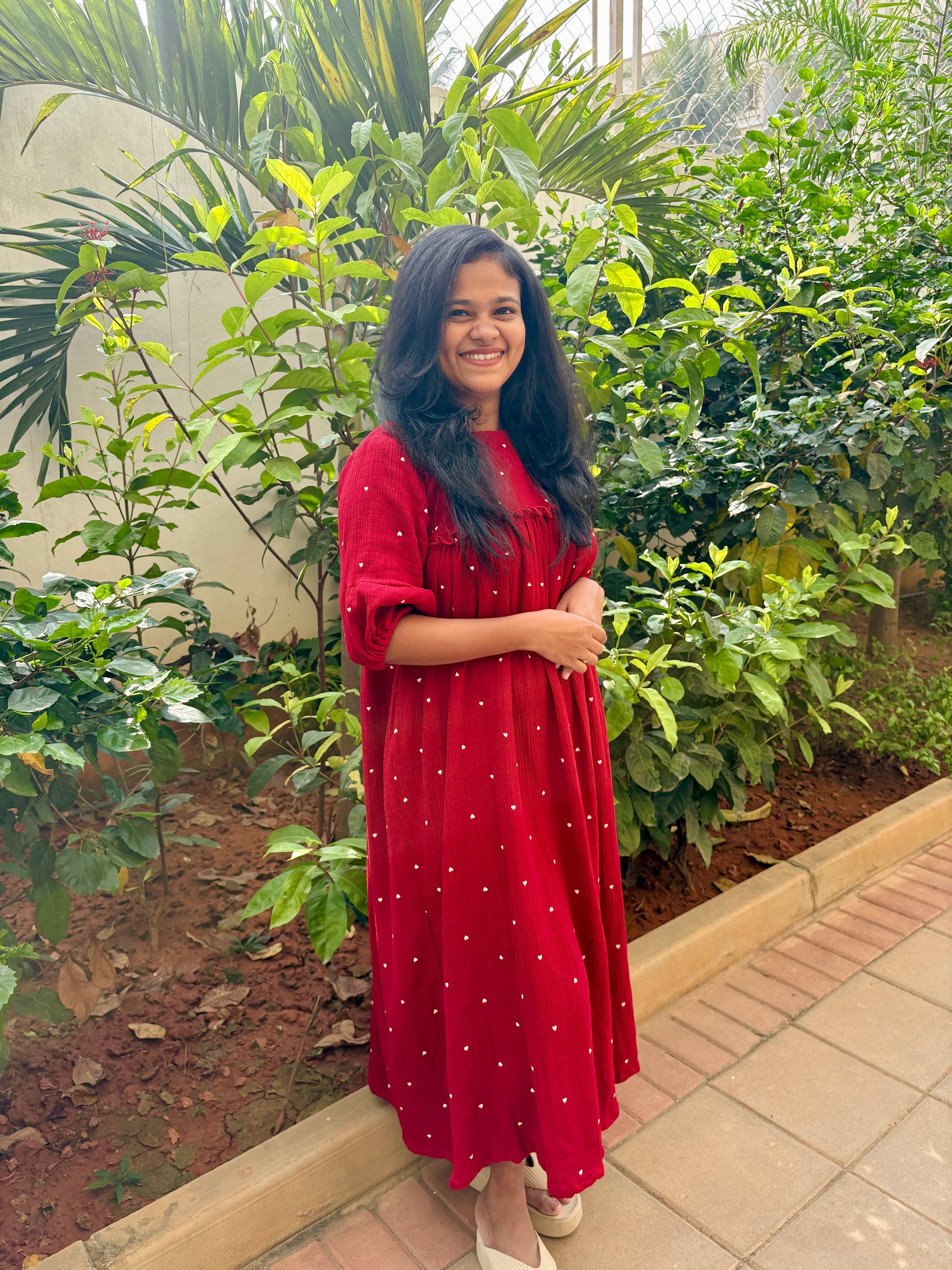 DS74 Double gauze muslin red heart dress 1